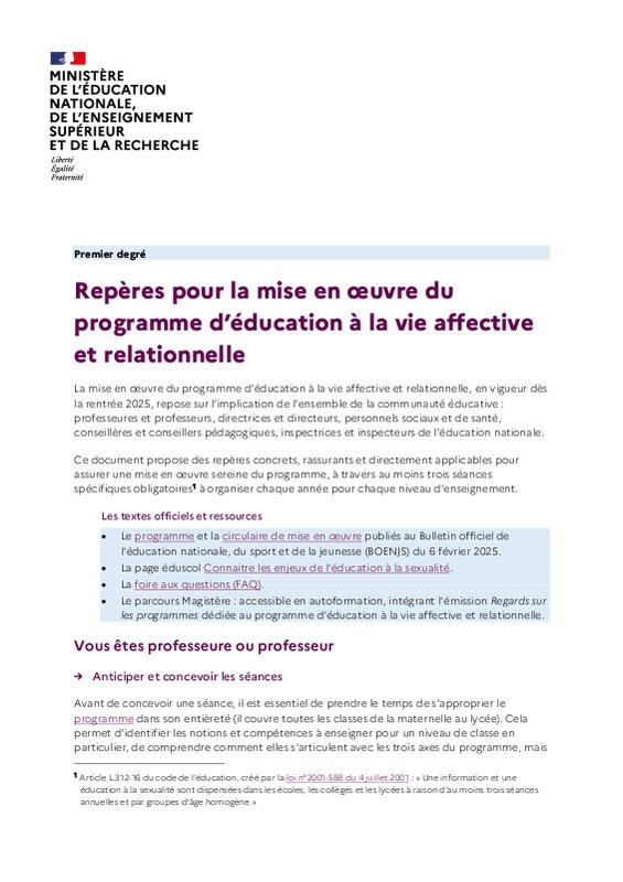 Programme Education La Vie Affective Et Relationnelle Ecole élémentaire